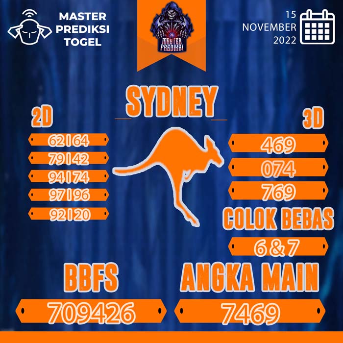 Master Prediksi Sydney Terbaik Hari Selasa 15 November 2022 – Dalam meningkatkan kemenangan harus ada keinginan yang besar sehingga bisa melewati semua hal untuk bisa meraih semuanya. Dengan kemauan yang besar ini akan menuntun anda untuk lebih baik lagi kedepannya mencari jalan keluar supaya hadiah itu terus anda dapatkan. Dan saat ini pastikan anda untuk memilih angka yang isinya sesuai dengan pilihan hati anda karena sangat banyak pilihan yang akan kami berikan. Untuk mempermudah pencarian Master Prediksi Sydney terbaik ataupun Syair Togel, silahkan langsung klik Prediksi Sydney Hari Ini yang Anda ingin lihat :