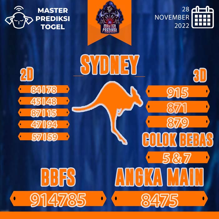 Master Prediksi Sydney Terbaik Hari Senin 28 November 2022 – Dalam meningkatkan kemenangan harus ada keinginan yang besar sehingga bisa melewati semua hal untuk bisa meraih semuanya. Dengan kemauan yang besar ini akan menuntun anda untuk lebih baik lagi kedepannya mencari jalan keluar supaya hadiah itu terus anda dapatkan. Dan saat ini pastikan anda untuk memilih angka yang isinya sesuai dengan pilihan hati anda karena sangat banyak pilihan yang akan kami berikan. Untuk mempermudah pencarian Master Prediksi Sydney terbaik ataupun Syair Togel, silahkan langsung klik Prediksi Sydney Hari Ini yang Anda ingin lihat :