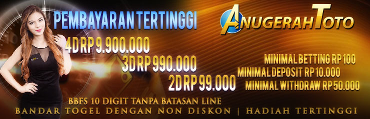 Anugerah toto menyediakan permainan tebak angka hadir dengan 99 pasaran lebih Seperti Singapore, Hongkong, Sydney dan Sao paulo. Game 4D, 3D, 2D, Colok, Naga, Macau, Kembang, Shio dll. Juga dengan Hadiah Terbesar IDN Live Prize 1 2D : 99.000, 3D : 990.000, 4D : 9.900.000. Prize 2 2D : 70.000, 3D : 700.000, 4D : 7 juta. Prize 3 2D : 9.000, 3D : 90.000, 4D : 900.000. Juga Bermacam Permainan Live Seperti IDN Live Game, Casino, Poker, Slot, Roulette, Joker Game, SBO Sportbook Game. Deposit Hanya Rp.10.000 dan withdraw Rp.50.000 Menggunakan Transfer Bank lokal. Buruan gabung mumpung masih ada promo terbaru yaitu Diskon untuk Depo Awal 10%. Bisa pasang pakai Hape WAP dan Mobile Android silahkan Download Aplikasinya. Daftar & Login gunakan link alternatif resmi yang asli di Anugerahtoto.